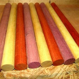 Twelve (12) Gorgeous Pieces Purpleheart, Padauk & Walnut Woods Round Dowels 12″L X 15/16″