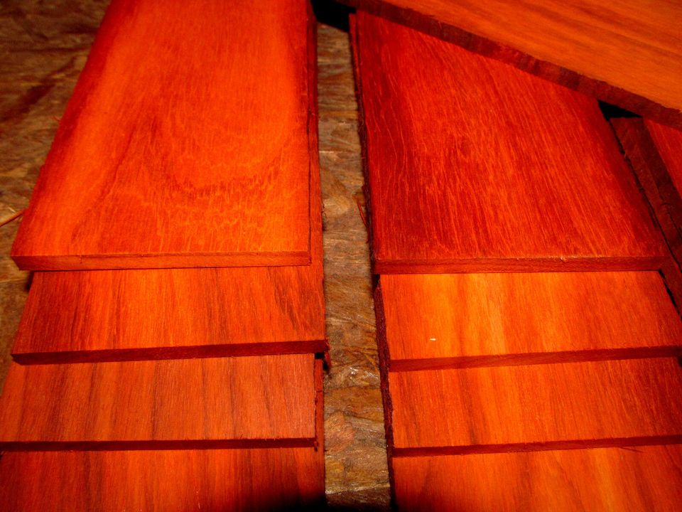 This amazing quality craft wood in sizes in bundles of top quality, beautiful and a variety of sizes is pro-sanded, kiln dried exotic Padauk hobby craft wood. Excellent thin Padauk for use in many woodworking projects. Dried and Sanded on two top bottom faces. Excellent thin Padauk for use in many woodworking projects. The rich red color in the heartwood comes from natural chemical compounds extracted from the soil and deposited in the heart of this tree wood.